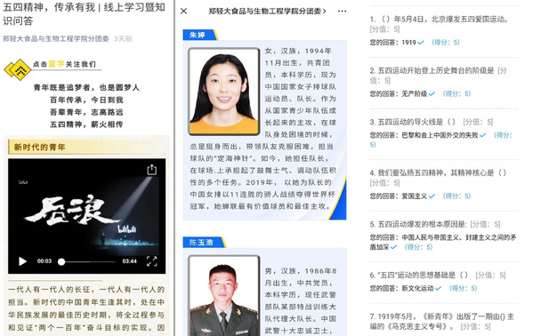 为弘扬五四精神,激励青年学生勇担使命、奋发有为,5月7日-14日,食品与生物工程学院组织开展“五四精神,传承有我”线上学习暨知识问答活动。
