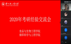 为引导学生树立正确的考研观,提高同学们的考研热情,进一步帮助学生掌握疫情影响下的研究生备考方法,6月14日晚7点,食品与生物工程学院通过腾讯会议举办考研经验交流分享会。学院2016级考取研究生的毕业生代表进行分享,2017级学生参加了会议,会议由辅导员老师马瑞静主持。