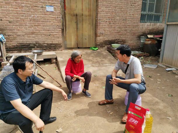 在我校驻村第一书记罗楚新、姬鹏先和村支书乔明占的带领下,张博士代表学院慰问贫困户张爱芝老人,询问了老人身体状况及生活情况。张爱芝老人对学校的关心和帮扶表示感谢。