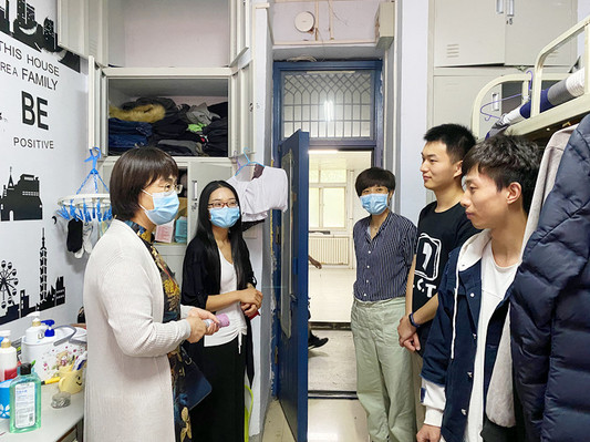 为进一步做好学院毕业生返校后、离校前的教育和管理工作,确保毕业生安全、平稳地离校,同时增进师生之间的感情与交流,表达对毕业生的祝福与期望,6月17日下午,学院党委书记郭晓丽、副书记王燕翔以及辅导员来到学生宿舍看望返校毕业生,了解学生返校后疫情防控、学习生活、就业等情况。