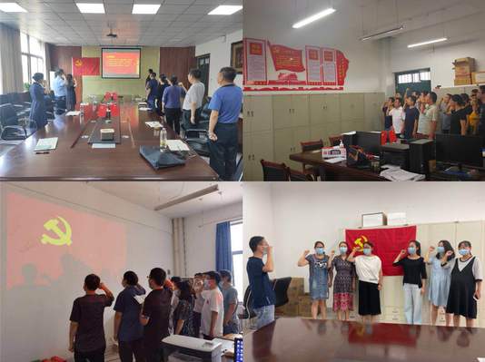 各支部全体党员面向党旗、高举右手,庄严宣誓。“我志愿加入中国共产党……随时准备为党和人民牺牲一切,永不叛党。”铿锵恢宏的誓词,震撼着每一位党员,进一步加深教师党员对党员身份的认同,引导全体党员自觉履行党员义务,立足岗位奉献,充分发挥党员先锋模范作用。