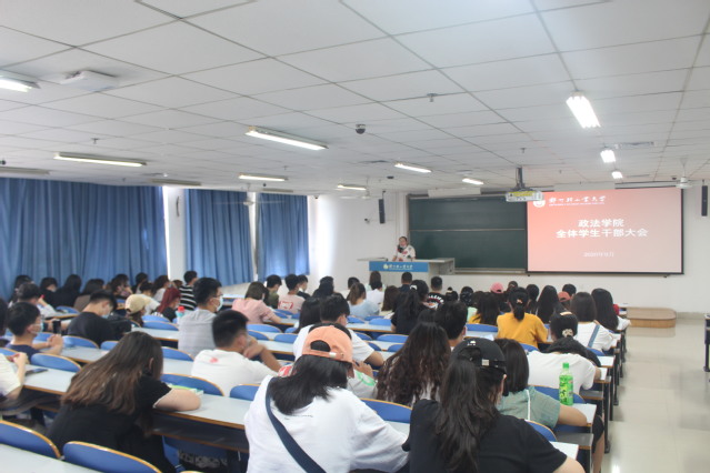 为传达部署本学期团学工作安排,提高学生干部的责任意识、服务意识,9月9日中午,政法学院在三教楼206室召开2020年学生干部大会,院党委副书记刘放美、各年级辅导员及全体学生干部参加了此次会议。