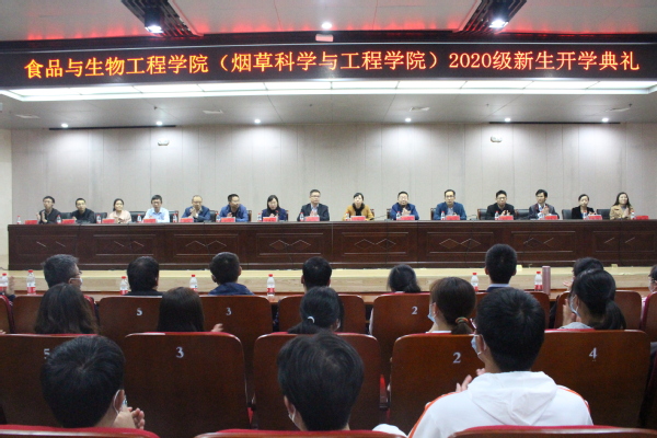 10月7日下午2点30分,食品与生物工程学院(烟草科学与工程学院)2020级新生开学典礼在科学校区逸夫图书馆学术报告厅隆重举行。学院党政领导、各系(实验中心)主任、新生班主任、全体辅导员老师和2020级全体新生参加了本次典礼。典礼由学院党委副书记李英梅主持。