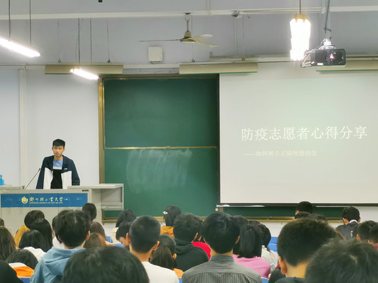 在慷慨激昂的共青团歌中,老师和全体同学齐声合唱,本次团课的帷幕正式拉开。团课伊始,张老师就“中国共青团的成立、团的章程、如何做好党的助手和后备军”这三个问题向同学们进行提问,帮助同学们重温团史,现场同学都认真思考,积极作答,积极向团组织靠拢。随后,胡世杰为同学们展示了数学学院践行共青团精神,积极参与疫情防控实践活动的动人事迹;姬翔和祝贺军作为团学干部代表,希望新同学从现在开始,走好每一步,在共青团的带领下,努力发展自己,提高自己,务实自己,奉献自己,做一名合格的团员。