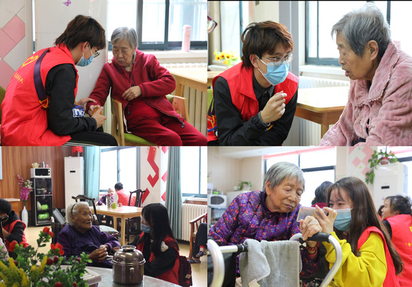 到达养老中心后,护工带着志愿者们进行了详细的登记、体温测量和病毒消杀工作后,大家一起进入了养老中心开始志愿服务。志愿者们陪老人们聊天,询问老人们的身体和生活状况,倾听老人对往事的回忆,帮助老人们整理房间。志愿者们还为老人们带来了精彩的节目,现场演唱了《我和我的祖国》、《父亲》、《精忠报国》等歌曲,并和老人们玩起了互动游戏,现场萦绕着欢声笑语,一些老人们也加入表演行列,演唱了自己拿手的戏曲节目,他们开心的像个孩童,一阵阵掌声、一句句“谢谢”表达了对志愿者们发自内心的认可。