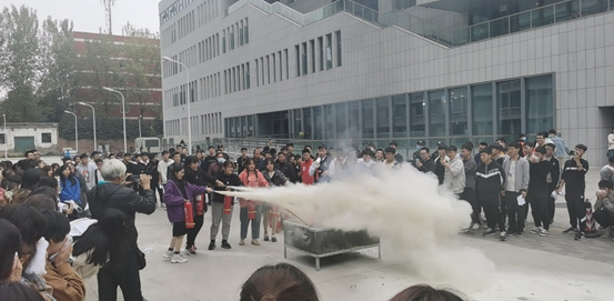 随后,演练前省消防协会赵教员、刘教员讲解了有关火灾现场的应急处置方案,灭火器的使用原理以及相关的注意事项。并亲自演练了灭火器的使用方法;在认真听讲及观摩后,学生们亲自体验了现场灭火的过程,面对熊熊燃烧的火堆,学生们表现的十分沉着,熟练地按照灭火的步骤和方法,将燃起的浓烟大火成功的迅速扑灭,做到了冷静沉着的面对突发现象,成功快速的扑灭大火的消防标准。