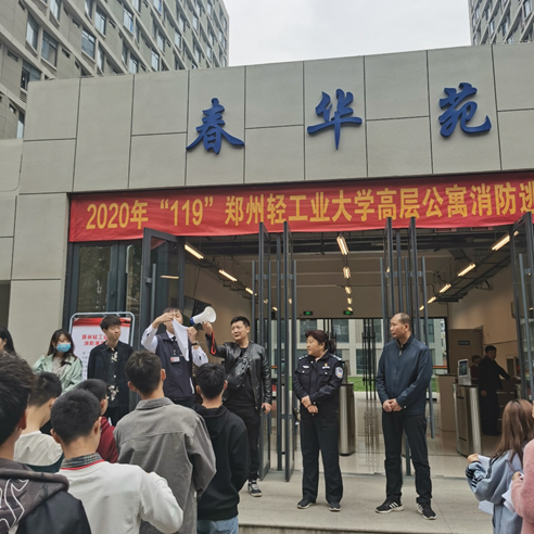 东风分局尹岩岩警官、河南省消防协会赵教员、刘教员、保卫处吴森林副处长、保卫处姜忠武副处长、校医院医务人员和300余名学生参加了本次活动。演练正式开始之前,由赵教员、刘教员分别讲解逃生技能和方法。下午消防应急疏散演练正式开始。