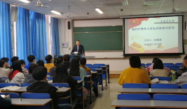 11月13日中午,政法学院党委书记宋德涛在教一楼511教室为公共事业管理专业19级1、2班学生讲授“新时代青年大学生的使命与担当”专题思政课。