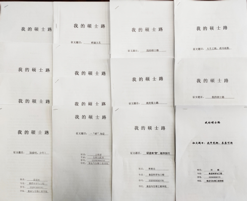 本次征文紧紧围绕“我的硕士路”主题,同学们分别讲述了自己在考研征程中的艰辛历程,成功上岸后的收获与喜悦。同时讲述了不忘初心,积极适应研究生与本科生之间的“变与不变”的学习生活,变的是学习方式,不变的是持之以恒的学习态度。最后“以梦为马”,在“硕士路”主题指引下树立职业目标、制定研究生生涯规划,争当新时代“科研人”,青春与活力跃然纸上,设定了三年“硕士路”的奋斗目标。经学院评审小组评审,评出一等奖4名,二等奖8名,三等奖12名。