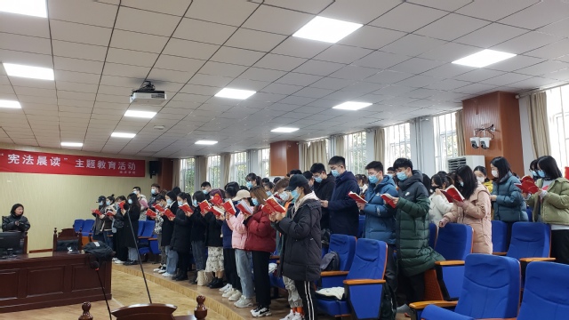 今年12月4日是第七个国家宪法日,为深入宣传学习习近平法治思想,大力弘扬宪法精神,维护宪法法律权威,12月4日,政法学院开展“12·4”国家宪法日“宪法晨读”活动。
