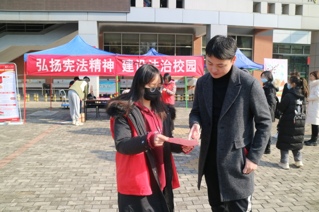 2020年12月4日是我国的第七个国家宪法日,为深入学习宣传习近平法治思想,大力弘扬宪法精神,维护宪法权威,政法学院组织开展“12.4国家宪法日暨宪法宣传周”系列宣传活动。本次活动以“深入学习宣传习近平法治思想,大力弘扬宪法精神”为主题。