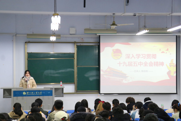 为深入贯彻学习党的十九届五中全会精神,12月4日,数学与信息科学学院在东一楼218教室举行党的十九届五中全会精神专题学习活动。本次活动邀请校青年讲师团成员陈春利同学主讲,学院入党积极分子、团校培训班学员等参加此次活动。