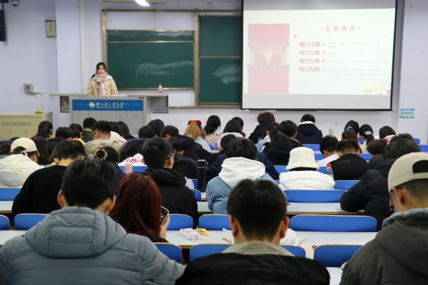 活动中,陈春利同学从十九届五中全会的概况和主要精神讲起,介绍分析了全会背景下的河南及新时代青年如何贯彻落实党的十九届五中全会精神等四个方面,深刻阐释了我国进入新发展阶段的重大意义、2035年远景目标和“十四五”时期主要目标、新发展格局的顶层设计等内容,宣讲内容丰富、讲解生动、深入浅出、阐释精准,对全面理解、准确把握全会精神具有很强的针对性和指导性。陈春利同学号召广大青年学子在学习、工作和生活中深入贯彻党的十九届五中全会精神,切实把思想和行动统一到党中央决策部署上来,加强理论学习、勇于拼搏奋斗,科学研判“时”与“势”,辩证把握“危”与“机”,把自己的个人理想追求融入到党和国家的事业之中,以青春之我创造青春之中国!