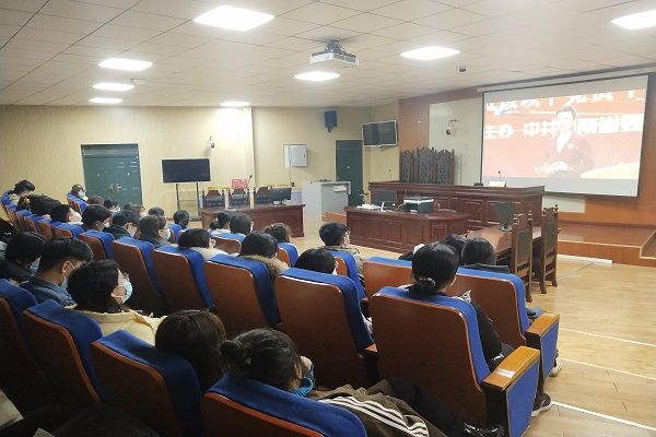 12月9日晚上,政法学院在活动中心楼112组织收看《铭记历史、走向复兴——河南省县处级以下党员干部“四史”知识竞赛》直播。全体教工党员、学生党员、入党积极分子参与。
