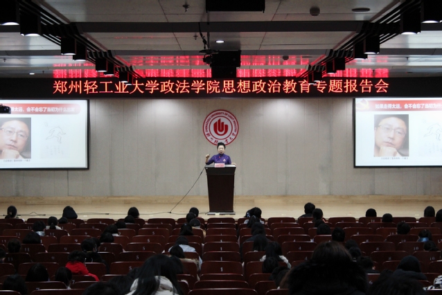 12月10日上午,应政法学院党委邀请,党的十九大代表、郑州市委候补委员、郑州圆方集团党委书记薛荣作思想政治教育专题报告会。报告会在科学校区图书馆一楼学术报告厅举行,政法学院300余名师生聆听报告。报告会由政法学院党委副书记刘放美主持。