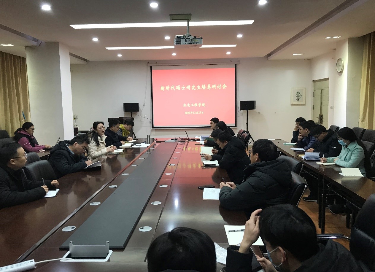 12月29日上午,机电工程学院在西三楼215召开了新时代硕士研究生培养研讨会,会议由副院长李浩主持,党委副书记孙琳、副院长何文斌、全体研究生导师及研究生辅导员参加了会议。