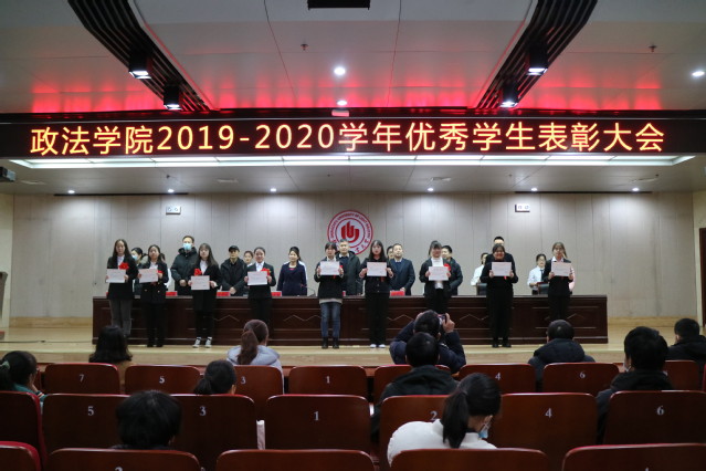 为推动学院优良学风建设,激励广大学生奋发学习、锐意进取,2021年1月7日下午,政法学院隆重举行2019-2020学年优秀学生表彰大会,对116名奖学金及荣誉称号获奖集体和学生进行表彰,学院党政领导、辅导员、班主任及全体2020级学生参加大会,仪式由学院党委副书记刘放美主持。