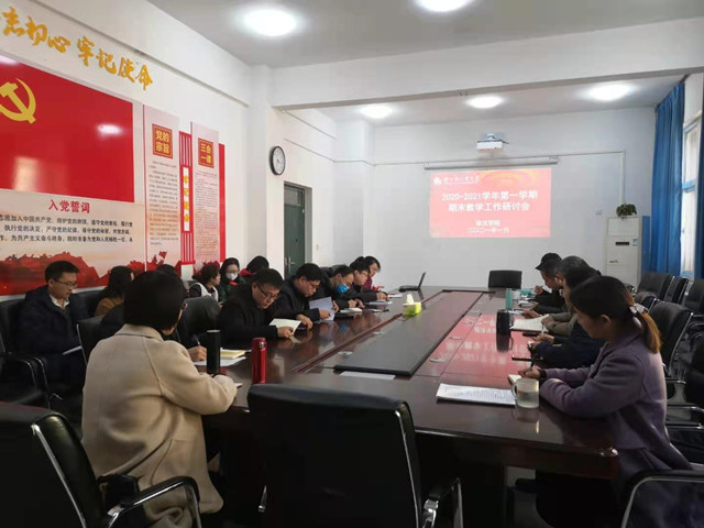 为深入贯彻落实教育部“全国教育大会”、“新时代全国高等学校本科教育工作会议”等会议精神,聚焦人才培养质量提升,认真贯彻落实一流专业和一流课程双万计划实施,加快推进“四新”建设,按照学校要求,政法学院于1月14日下午3:30在政法楼212会议室召开了期末教学研讨会。学院全体班子成员、各专业负责人和教师代表约20人参加了会议,会议由副院长栗志强主持。