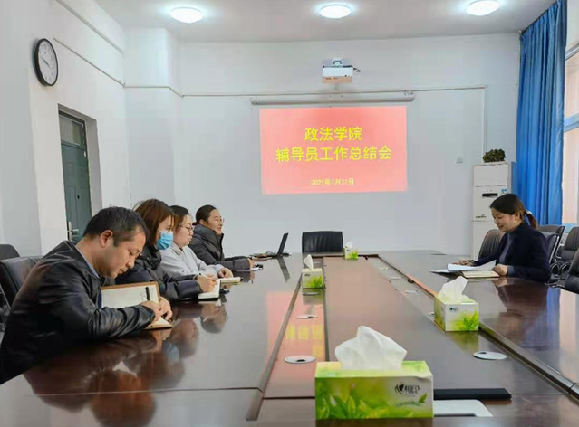 1月21日下午,政法学院在政法楼212召开了辅导员期末工作总结会。学院党委书记宋德涛和全体专职辅导员参加会议,会议由学院党委副书记刘放美主持。