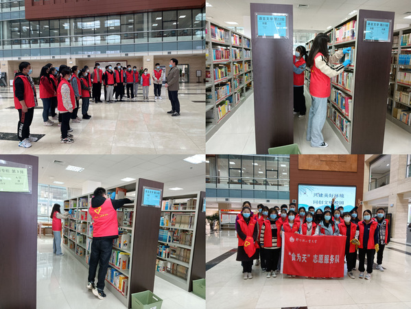 3月11日下午三点,我院30名志愿者身着统一的志愿服装在逸夫图书馆南门集合,开展“共建文明校园—图书馆图书整理”志愿服务活动。活动伊始,为了更好的保护图书馆内藏书,提高整体工作效率,负责老师对志愿者们进行了培训指导并根据服务内容进行了具体分工。志愿者共分成三个小组,负责图书馆三个楼层借阅区的图书整理和负一楼藏书区的清洁工作。活动过程中,志愿者们分工配合,有的负责提水,有的整理藏书,有的擦拭书架。经过两个小时的工作,看着一排排整齐的图书,干净的书架,大家心中充满了成就感。志愿者们用实际行动让书香满溢的图书馆,又增添了一份清新,一抹明亮。