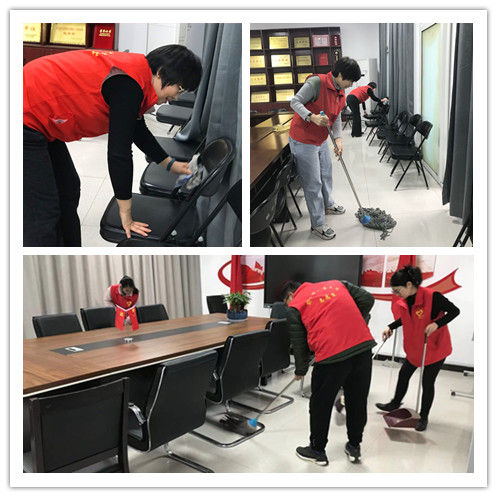 党员们按照分工进入负责区域,捡拾地面杂物、清扫卫生死角垃圾。在活动中,支部党员积极发挥敢于冲在前面、敢于抢挑重担的奉献精神,大家不怕脏、不怕苦、不怕累,热情似火,干劲十足,以劳动为荣,乐在其中,积极清扫办公区卫生。经过大家一个多小时的共同努力,学院办公区域的面貌纷纷焕然一新,形成了一道亮丽的风景线。党员们用自己的实际行动营造了绿色、干净、和谐的美好办公环境。大家一致认识到党员义务劳动,既是一种示范,更是“践行入党誓词,不忘入党初心”的学习实践。