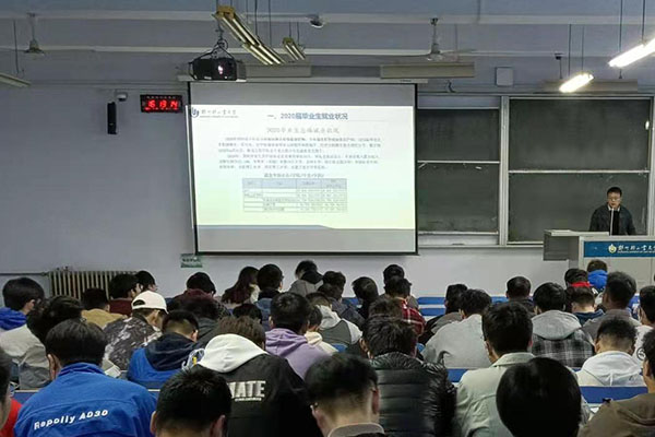 会上,孙琳副书记首先分析了目前的就业形势,勉励同学们要认清形势,放平心态拓宽渠道,抓住机遇。罗国富院长结合学院目前毕业生考研、签约等实际情况,对毕业生提出三点建议:一是正确认知自我,冷静分析,准确定位,科学规划,快速进入升学复试、就业状态;二是学会充分展示自我,提前做好简历及面试应聘的准备,抓住春季校招的黄金时期,积极参加校招活动,寻找实习和就业机会,争取先就业再择业;三是坚定信心,直面挑战,积极开拓就业渠道,充分利用各种资源实现高质量就业。最后,就业专职老师吕志斌介绍了2020届毕业生就业状况及考研去向,详细讲述了简历的制作要点及面试注意事项。