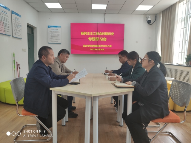 3月30日上午,政法学院党委理论学习中心组在学院103室开展党史学习教育第一次专题学习研讨活动。中心组全体成员参加,学院党委书记宋德涛主持学习研讨。