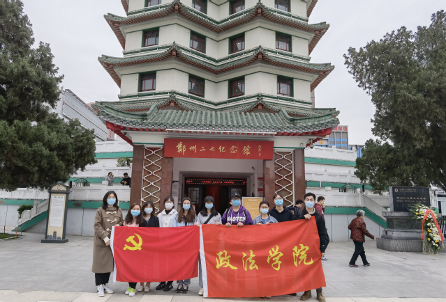 为庆祝中国共产党成立100周年,学习党的光辉历史,强化学生传统革命教育和理想信念教育,4月1日下午,政法学院组织学生党员走进郑州市二七纪念塔开展主题党日活动,学习中国共产党的光辉历程,感受中国共产党艰苦奋斗的那段可歌可泣历史。