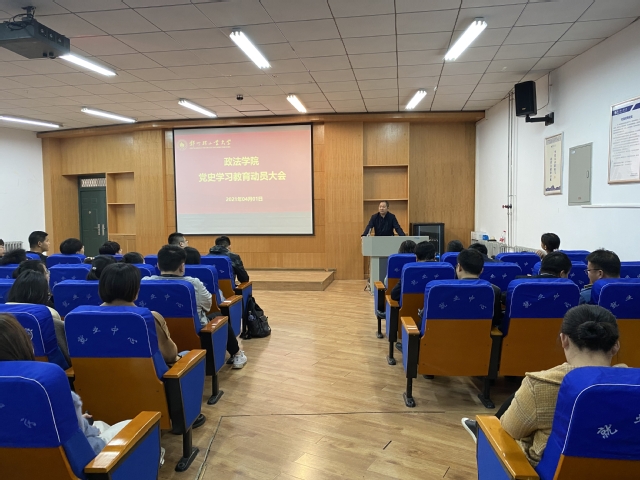 4月1日下午,政法学院在活动中心113室召开党史学习教育动员大会,学院全体党员参加。会议由学院党委副书记刘放美主持。