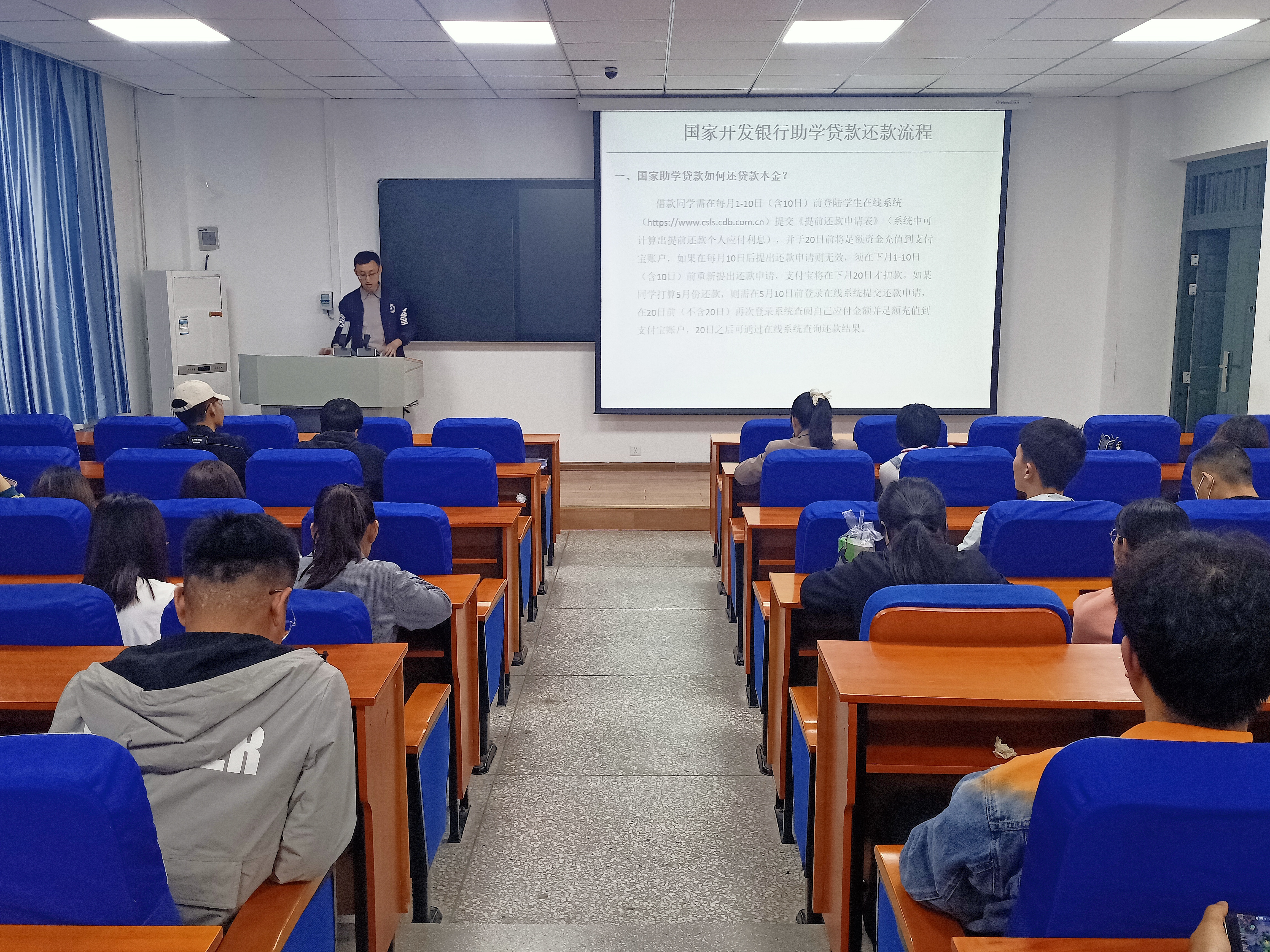 会上,李皓老师首先向同学们介绍了国家助学贷款还款流程。随后从贷款毕业生按时还款的重要性、贷款违约必须承担的后果、贷款毕业生信息确认流程等方面做了详细介绍。并结合实际案例向大家讲述了贷款逾期违约对个人征信的影响和严重后果。提醒同学们注意毕业确认和贷款到期的重要时间节点,鼓励有条件的贷款学生提前还款。同时提醒大家要谨防不法分子利用助学贷款的名义向同学们行骗,要求同学们对收到的信息仔细辨别,以防被骗。希望同学们自立自强,诚实守信,怀揣对国家、社会和学校的感恩之情,以优异的成绩回报国家和社会。