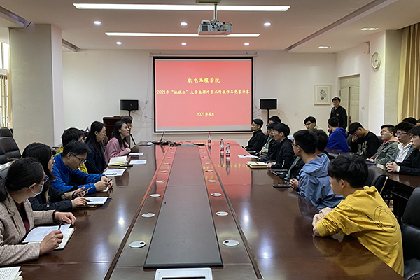 为进一步激发学生的创新思维,培养创新能力、实践能力、团结协作能力,营造良好的科研创新氛围,4月12日下午,机电工程学院在西三楼215举办了2021年“挑战杯”大学生课外学术科技作品选拔赛。学院党委副书记孙琳、副院长何文斌及四位专业教师出席大赛并担任评委。
