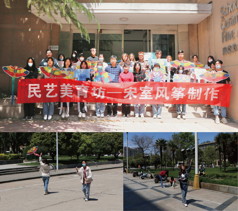 活动中,宋长虹老师从风筝起源讲起,以宋文化为主,讲述风筝在宋朝时期社会经济和文化活动中的重要地位,汴京宋室风筝也因此形成了独特的风格。制作风筝时,宋老师带领大家组装骨架、糊面粘贴、绘制上色,鼓励同学们发挥专业特长,放飞想象力,将自身对美好生活的向往都表达出来。不一会儿,和谐美丽的青山绿水、天真浪漫的卡通形象、传统吉祥的动物图案、构成主义的抽象表达,一个个造型多样、色彩亮丽的风筝图案便活灵活现跃然纸上。最后,大家走出教室,放飞了自己创作的风筝作品。