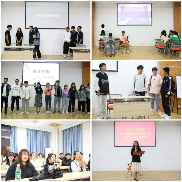 本次活动共计收到25个学生的原创剧本。经初审,最终8个剧目进入决赛。各团队紧贴大赛主题,将大学生活中点点滴滴串联成舞台上的一幕幕场景。从讲述校园贷的《网贷之网》到时下话题敏感的抑郁症《“假”笑》,从讲述人际关系的《连心里》到沉迷游戏、游戏人生的《镜面扭转》......看似诙谐幽默的背后是当代大学生所熟悉熟知的生活情节,欢笑之余引人深思,他们用默契的配合和用心的表演为现场观众呈现了一幕幕触动内心的剧目。最后雷老师对各班作品进行点评和总结,并对为本次比赛而付出努力的同学给予了肯定。