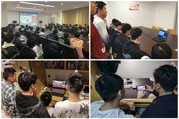 学院组织学生党员、入党积极分子、学生骨干代表,在西三楼215会议集中观看第一堂课:“同上党史思政大课”,其他各年级各班级组织学生通过电脑或手机同上“四史”思政大课第一堂课。上课结束后,学生反映强烈,纷纷表示,站在“两个一百年”奋斗目标的历史交汇点,开展党史学习教育,正当其时;党的百年历史,就是践行初心使命的奋斗史,始终与人民心连心、同呼吸、共命运;党史是最好的教科书,是中国共产党人赓续传承的风向标,为其注入持久深沉的精神动力;作为新时代的大学生,要主动扛起肩上的重担,刻苦学习,传承红色基因,为实现中国梦而奋斗不息。