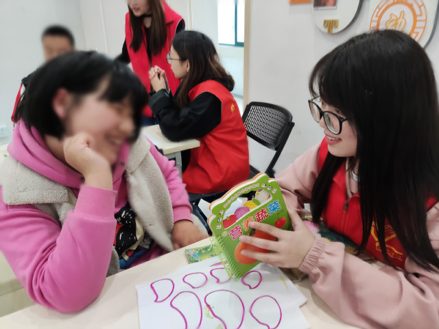 到达活动地点后,社工首先对志愿者进行了培训,帮助志愿者了解如何针对心智障碍儿童开展志愿服务以及在开展志愿服务中的注意事项。志愿者运用社会工作专业知识,根据每位孩子的特点以及自己的特长,通过配对一对一进行课业辅导。课业辅导结束后,志愿者和孩子们进行交流沟通,详细询问孩子的生活情况,鼓励孩子们树立信心,积极乐观面对生活。志愿者带领孩子们开展游戏互动,让孩子们在轻松的环境下放松身心。获得结束后,每一位孩子都向志愿者们表达了诚挚的感谢。护童行动将会持续开展,长期为孩子提供帮扶,让孩子们从中获得知识与快乐,志愿者在参与志愿服务的同时也能将课堂中学到的知识运用到实践中,让他们感受到社会大家庭的温暖。