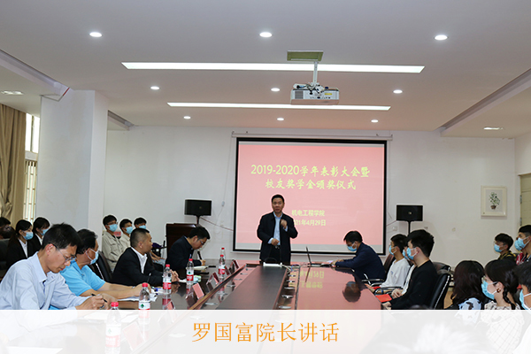 最后,罗国富院长讲话。他向为学院捐资设立校友奖学金的杰出校友表示崇高敬意,向受表彰的同学表示热烈祝贺。他希望同学们要懂得感恩,常怀感恩之心,孝敬父母,尊敬师长,报效祖国,回馈社会,用爱回应一切,宽容他人;要自强不息,在学习中磨练意志,在生活中锤炼品格,听从历史的召唤,不断超越自我,无畏艰难困苦,勇于攀登;要志存高远,勤奋学习,掌握基础知识,筑牢专业功底,利用好学校提供的各种开放共享优质资源,追寻自己的梦想,继续深造。