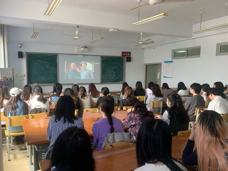 首先,高老师带领同学们观看《建国大业》,讲述英雄故事,领略民族精神。向历史寻经验,向历史求规律,向历史探未来。观影结束后大家共同探讨,恰逢五四青年节,作为当代青年该如何牢记历史使命,为中国梦奉献青春。“抓好青少年学习教育,让红色基因、革命薪火代代传承”,高老师以习近平总书记的这番话向同学们指出了开展党史学习教育的重大理论和实践意义,要求同学们将所学到的理论知识转化为实践能力,来应对毕业走向社会的种种挑战。并播放北大宣传片《星空日记》,现实、梦想、爱情、亲情交替,阐述了北大精神。为迷茫的年轻学子提供选择,鼓励所有同学们要一直坚持自己的梦想,每个人都像一颗星星发出独特的光芒。影片结束后,高聪蕊老师用交流互动的方式解决了大家面临毕业就业的种种疑问和困惑,同学们踊跃发言,受益良多。