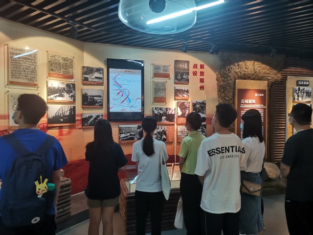 在“郑州记忆”展厅,大家依次参观了“古代文明”“铁路交会”“二七风暴”“开埠设市”“抗战岁月”“古城新生”“省会迁郑”“文革十年”“改革开放”等九个展区。一幅幅精选的图片,一个个动人的故事,一页页珍贵的文献,生动展现了这座古城屡经盛衰,饱经沧桑,孕育创造了无比辉煌的文明业绩和丰富灿烂的文化遗产,新中国成立以来中原大地发生的沧桑巨变,以及郑州人民满怀激情地步入了历史上思想最解放、城乡发展速度最快、面貌变化最大、经济文化社会空前繁荣的新时代。通过参观展览、聆听讲解,大家共同追忆历史,回顾党领导工人开展革命运动的光辉历程,观看解放郑州激烈战斗的感人场面,切实感受英勇斗争的峥嵘岁月,深切缅怀壮烈牺牲的革命先烈。