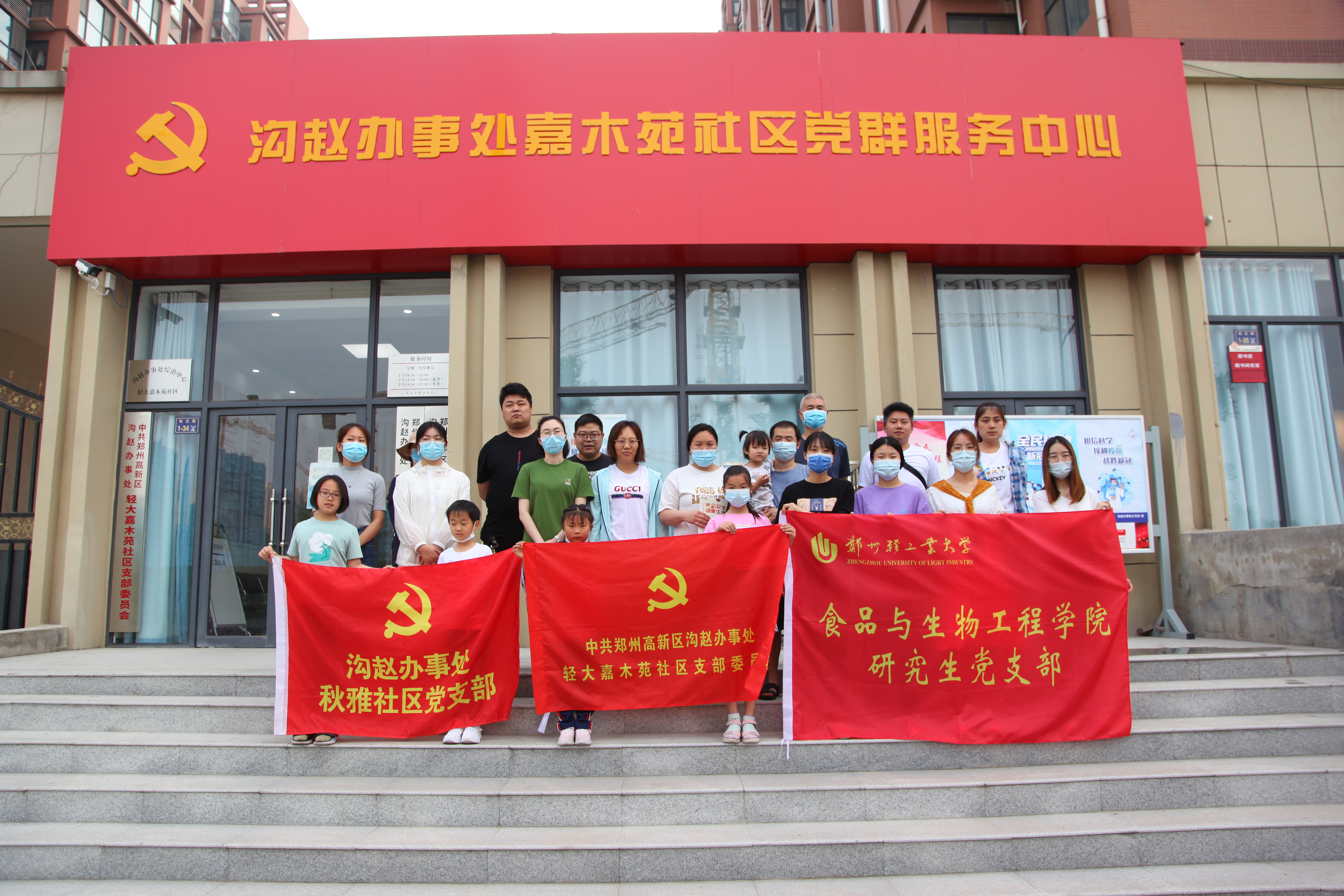 为进一步加强食品安全教育工作,践行社会主义核心价值观,食品与生物工程学院研究生党支部于2021年5月22日上午赴高新区沟赵办事处轻大嘉木苑社区开展食品安全志愿宣讲活动。
