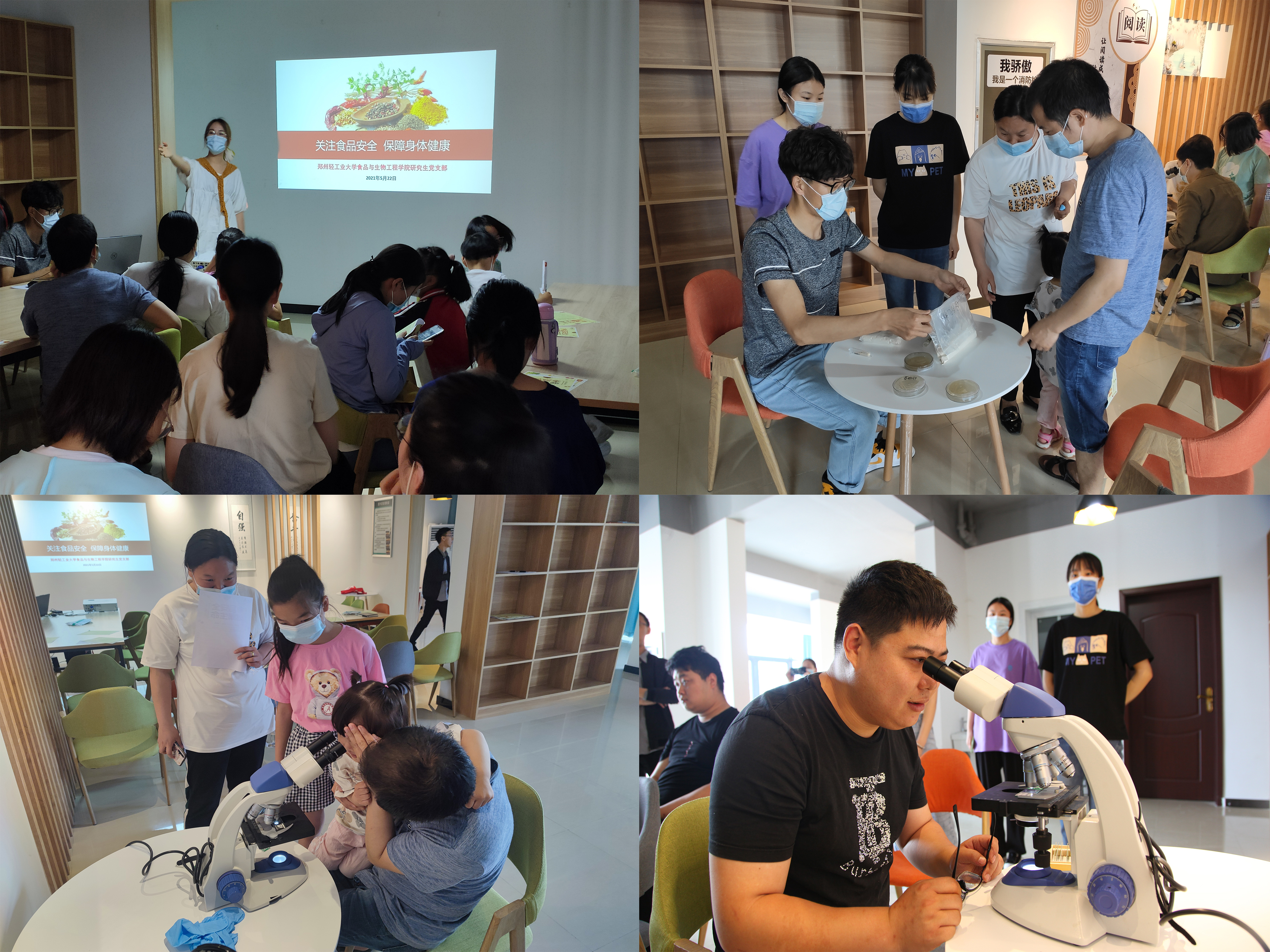 上午9时,本次志愿服务活动的前期工作已准备就绪。首先,研究生党员志愿者通过ppt和宣传页的形式向社区居民科普了食品安全及食品添加剂的知识,志愿者生动有趣的讲解,激发了居民们对食品添加剂的兴趣。随后,志愿者向居民宣讲了相关食品安全政策、食品安全科普知识等,告诫大家不要吃三无食品,拒绝吃垃圾食品,要提高自我保护意识,谨慎选购包装食品,在购买食品时要认真查看包装标识、食品标签等内容。接着,志愿者通过显微镜让居民们看到生活中食物的微观形貌,并展示蛋白、淀粉以及多糖等物质样品让居民切实了解食物的本质。最后,志愿者通过一些小实验让小朋友们直观的认识到平时生活中常见的一些食品添加剂以及它们的作用。
