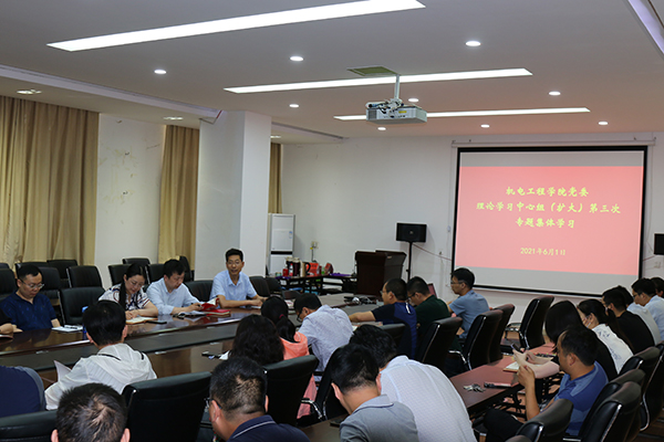 6月1日上午,机电工程学院党委在西三楼215会议室召开理论学习中心组(扩大)第三次专题集体学习会,学院党委理论学习中心组成员、科级干部、民主党派成员、全国优秀教师、教授和博士代表等参加会议。会议由党委书记刘国豪主持。