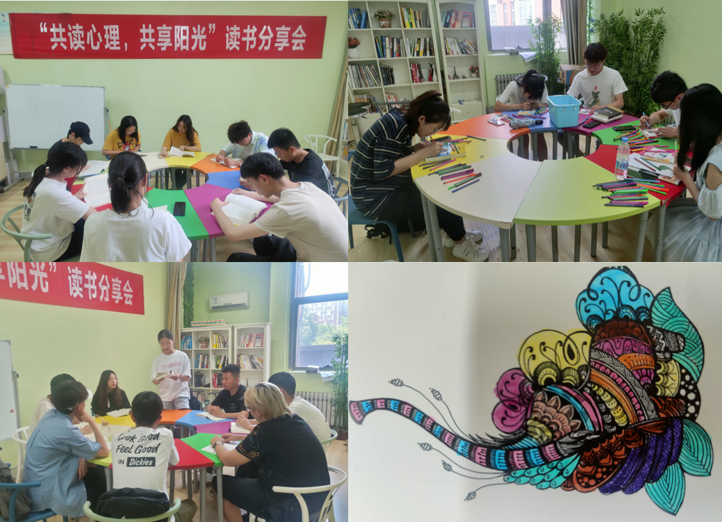 活动中,雷老师首先讲明了本系列读书分享会的初心和主题,引导同学们树立同理心,正确看待挫折、学会心理调适,以平和心态面对未知的人生。同学们围坐在一起,相互推荐书籍、交流读后感,分享亲身实例,共同进步成长。陈梦蝶同学为大家分享了《交往心理学》的经典段落,并表示要有意识地寻找协调各方人际关系的方法,同时合理保持人际交往距离。通过倾听她的分享,同学们也进一步加深了对人际交往的理解。分享结束后同学们共同参与了填色活动,为自己的读书分享会留下美好记忆。