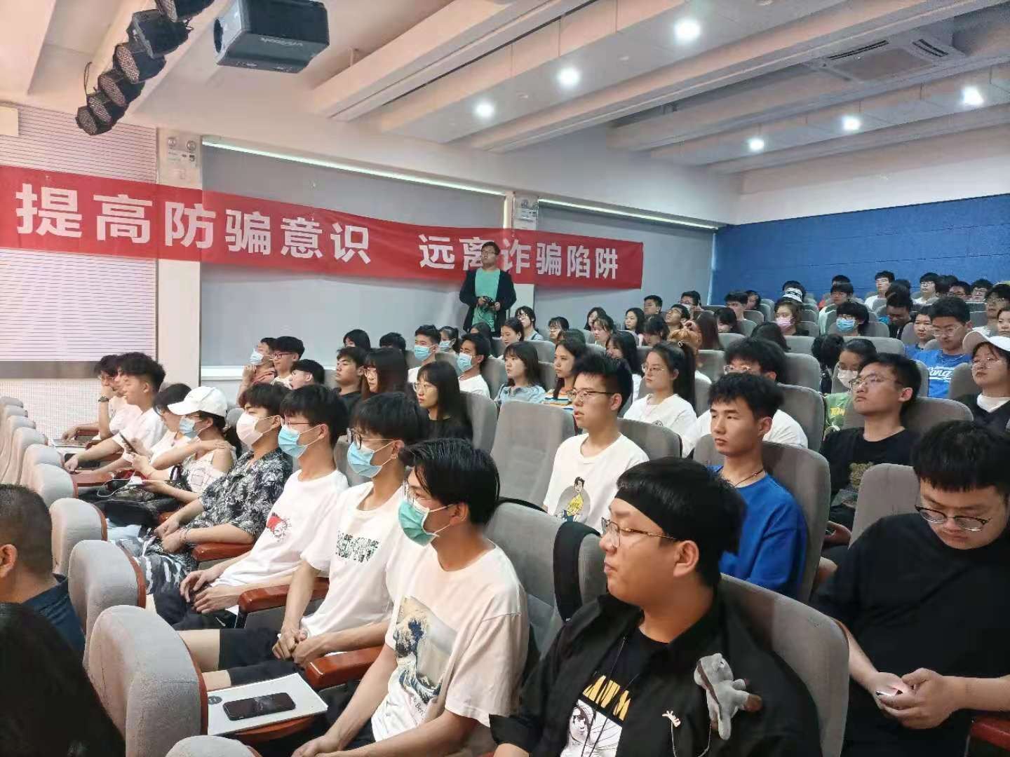 通过此次李煜伟警官诙谐幽默的电信诈骗的常用手段讲座,使广大师生提高了防范意识,从而共同构筑防范诈骗的防线。