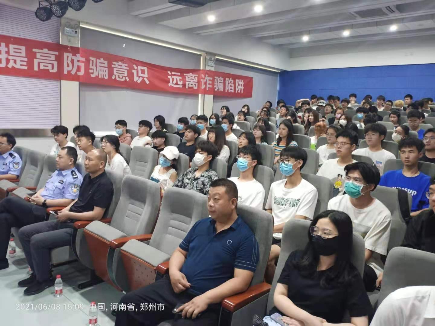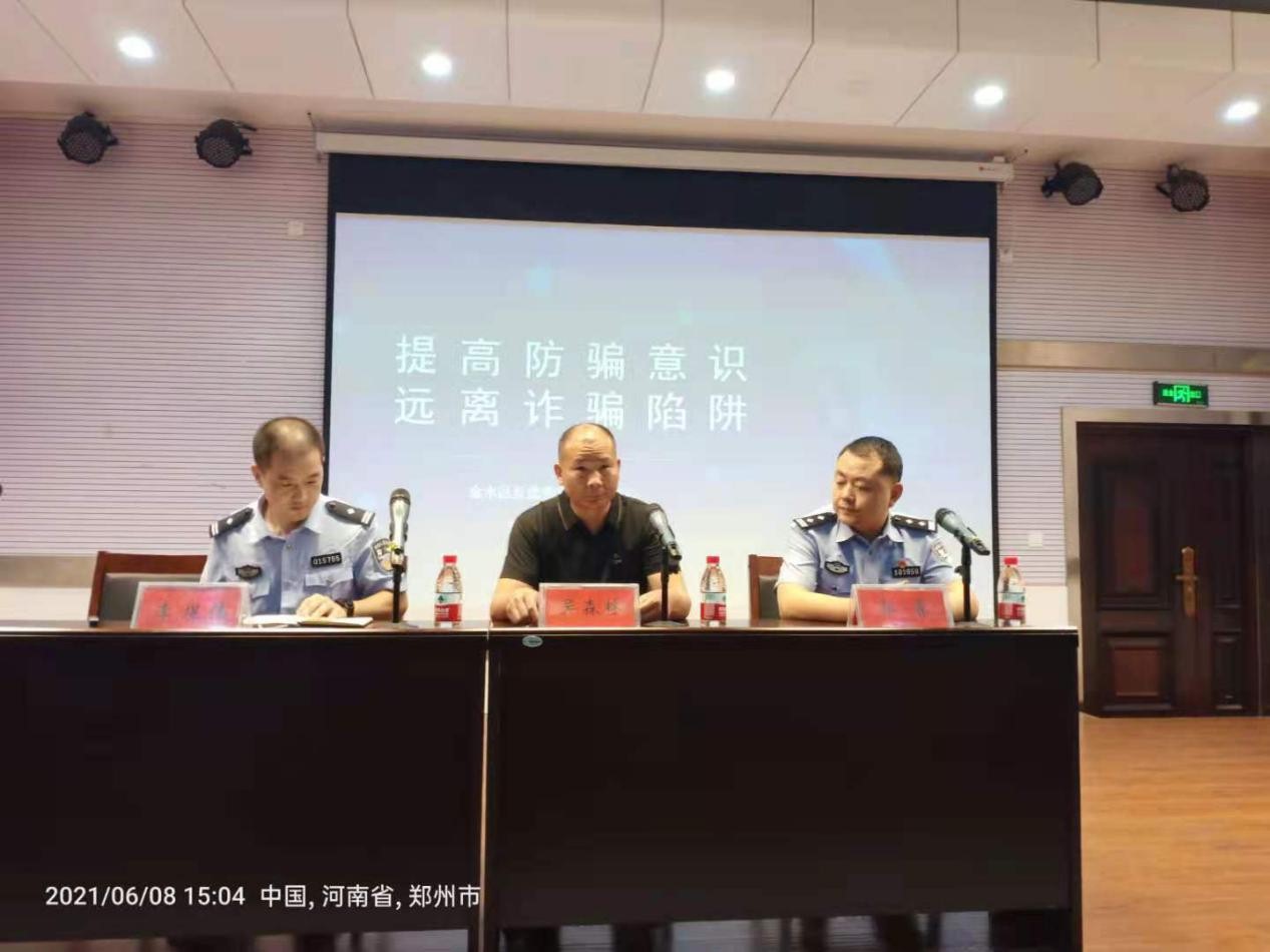 为了有效遏制利用电信渠道对师生实施诈骗犯罪活动高发势头,提高广大师生识骗防骗的意识和能力,预防和减少电信诈骗案件的发生,切实维护师生的根本利益,6月8日下午,在东风校区教二楼一楼演讲厅,由保卫处牵头,联合学生处召集一百余人师生,邀请郑州市公安局金水分局反虚假信息诈骗中心李煜伟警官,金水分局东风路派出所副所长郭睿警官,来我校给学生讲解了一堂生动有趣的反诈骗知识讲座。