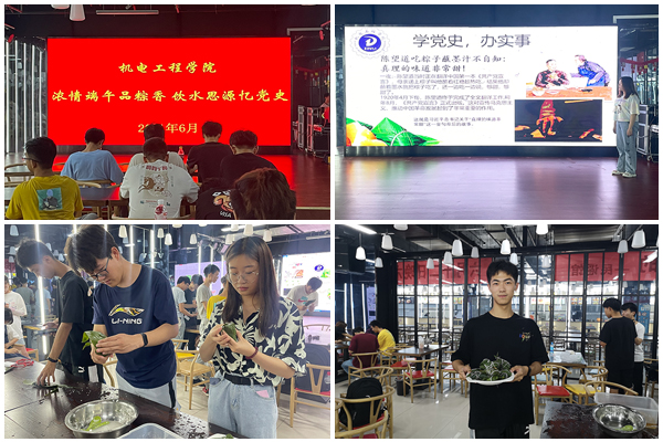 为进一步弘扬中华优秀传统文化,推动党史学习教育深入开展,扎实开展“我为师生办实事”实践活动,营造庆祝建党100周年的良好氛围,6月10日下午,在端午佳节来临之际,机电工程学院在食堂三楼电影厅开展“浓情端午品粽香,饮水思源忆党史”主题活动,学院教师代表和各年级学生参加了本次活动。