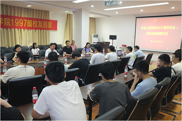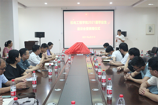 2021年6月21日,机电工程学院在西三楼215会议室召开2021届毕业生座谈会暨捐赠仪式,学院党委书记刘国豪、院长罗国富、副书记孙琳、系主任、辅导员及2021届毕业生代表参加了会议,会议由副书记孙琳主持。