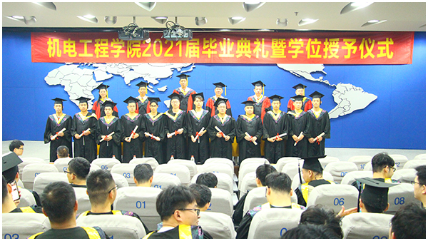 毕业是人生的新起点,今年的毕业季恰逢中国共产党成立100周年,这一届毕业生与伟大的时代同向同行,是实现第一个百年奋斗目标的见证者,是实现第二个百年奋斗目标的建设者。2021届毕业生一定会在百年的际遇中放飞人生梦想,在奋斗的时代中成就事业华章。机电工程学院2021届毕业典礼在热烈的掌声中圆满结束。