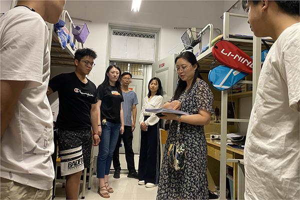 辅导员逐一排查各个宿舍,检查宿舍卫生、违章用电、私自外宿、在宿舍从事违禁活动等情况,对发现的问题要求立即整改,要求学生不得使用违章电器,不在宿舍内吸烟,要发挥“6S”宿舍示范效应,遵守宿舍文明公约,养成良好的作息习惯。在走访过程中,辅导员向学生发放《大学生校园安全防范告知书》,向学生宣传校园安全防范知识,教育学生强化国家安全意识,做好人身财产安全防范、网络安全防范、食品卫生安全防范和交通安全防范。