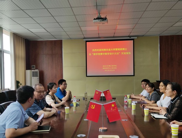 为转变教学理念,提升教学质量,强化课程思政,更好的落实立德树人根本任务,2021年6月25日上午,食品与生物工程学院邀请河南农业大学食品科学技术学院雷萌萌副教授来我院进行交流。学院党委书记张阳,副院长杨靖,部分教师代表参加此次交流,交流会由副院长杨靖主持。