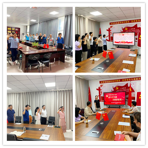 各党支部重温了入党誓词,面对鲜红的党旗,举起右手庄严宣誓,在党旗下接受心灵的净化和洗礼,牢记共产党员的政治责任和历史使命。全体党员以饱满的激情传达出了作为共产党员的自豪感与使命感,面对党旗再次展示了永远跟党走的信心和决心。